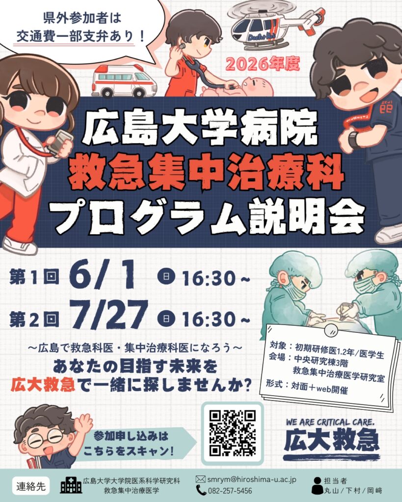 【第2回もあります!】広島大学病院 救急集中治療科 プログラム説明会 2026年度